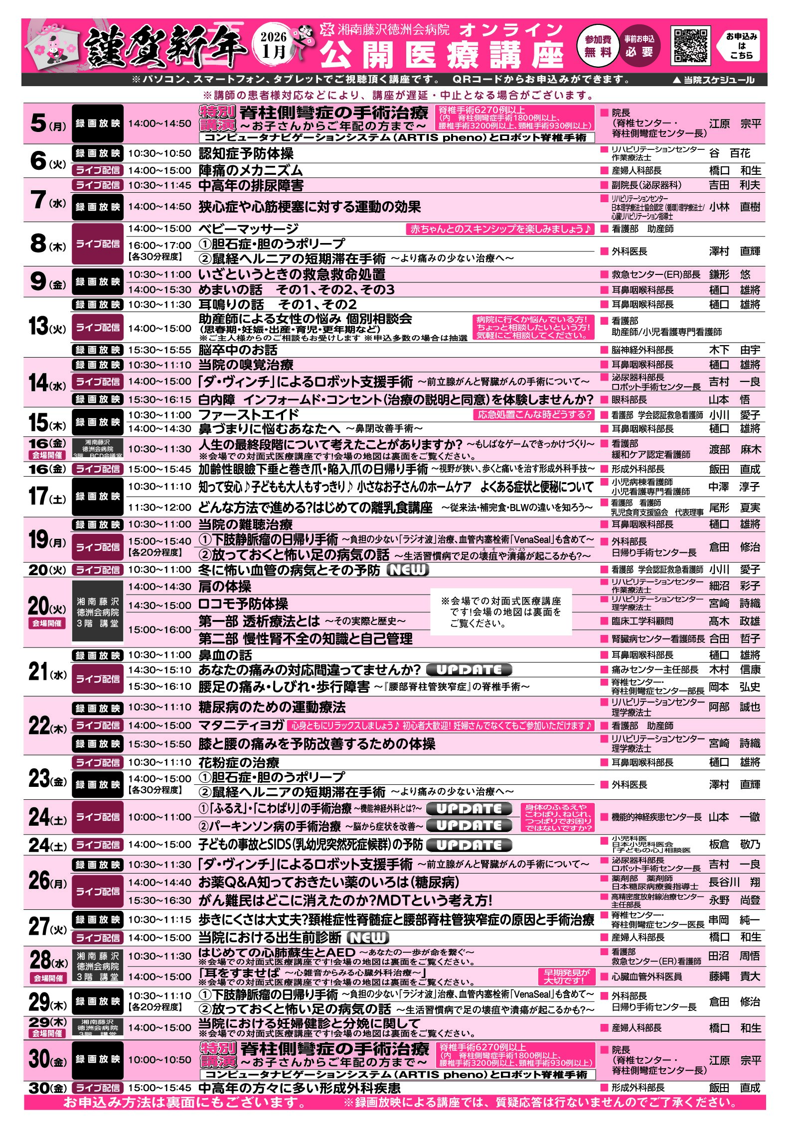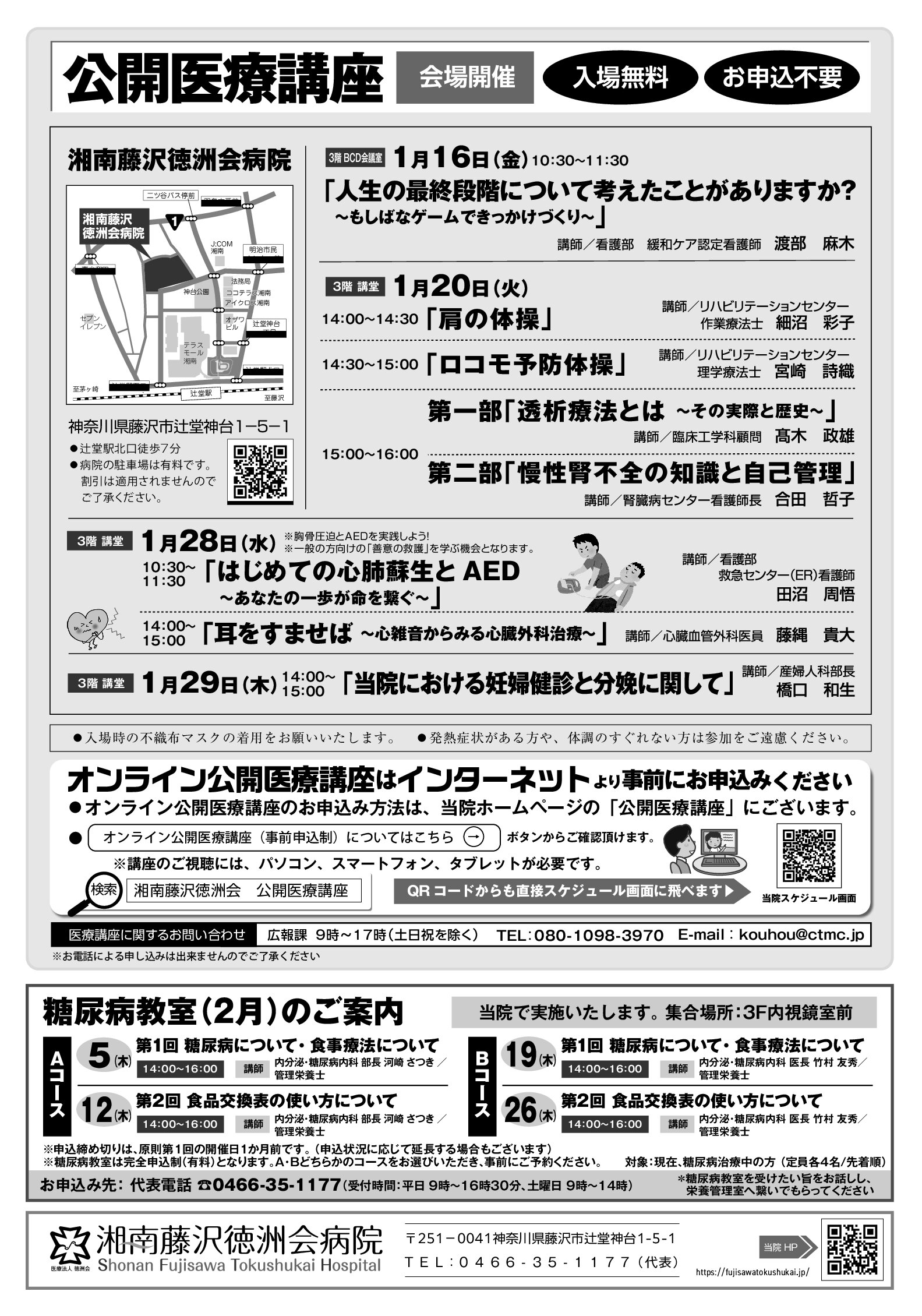 湘南藤沢徳洲会病院では、オンライン公開医療講座のスケジュールや、広報誌MARINEの発行のお知らせをメインに、当院からのお知らせなどを月に数回、メールでお届けしております。