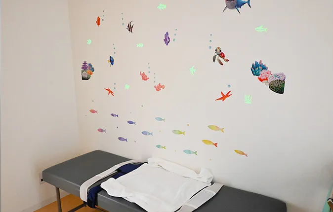すべての病床に、小児用柵付きベッド、呼吸心拍モニター、精密輸液ポンプ等を常備し、安全で確実な治療を受けられるよう配慮しています。専用の入浴・シャワー室、プレイルームを備え、快適な入院生活を送れるよう工夫しています。付き添い用のソファベッドを配置し、小さなお子様の場合はご家族の付き添いによる入院治療が可能です。