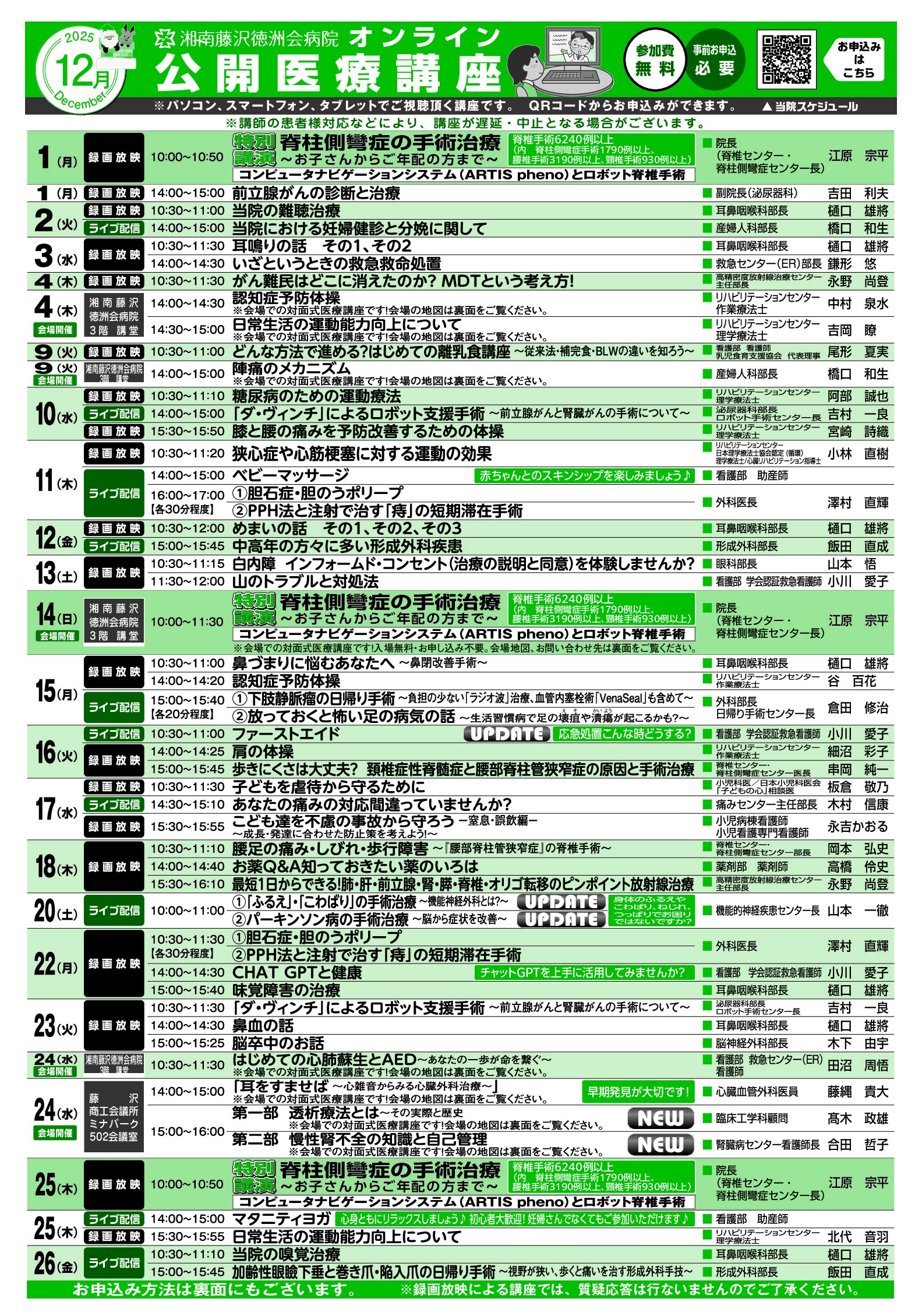 - 医師の患者対応により予告なく遅延、中止となる場合がございます。