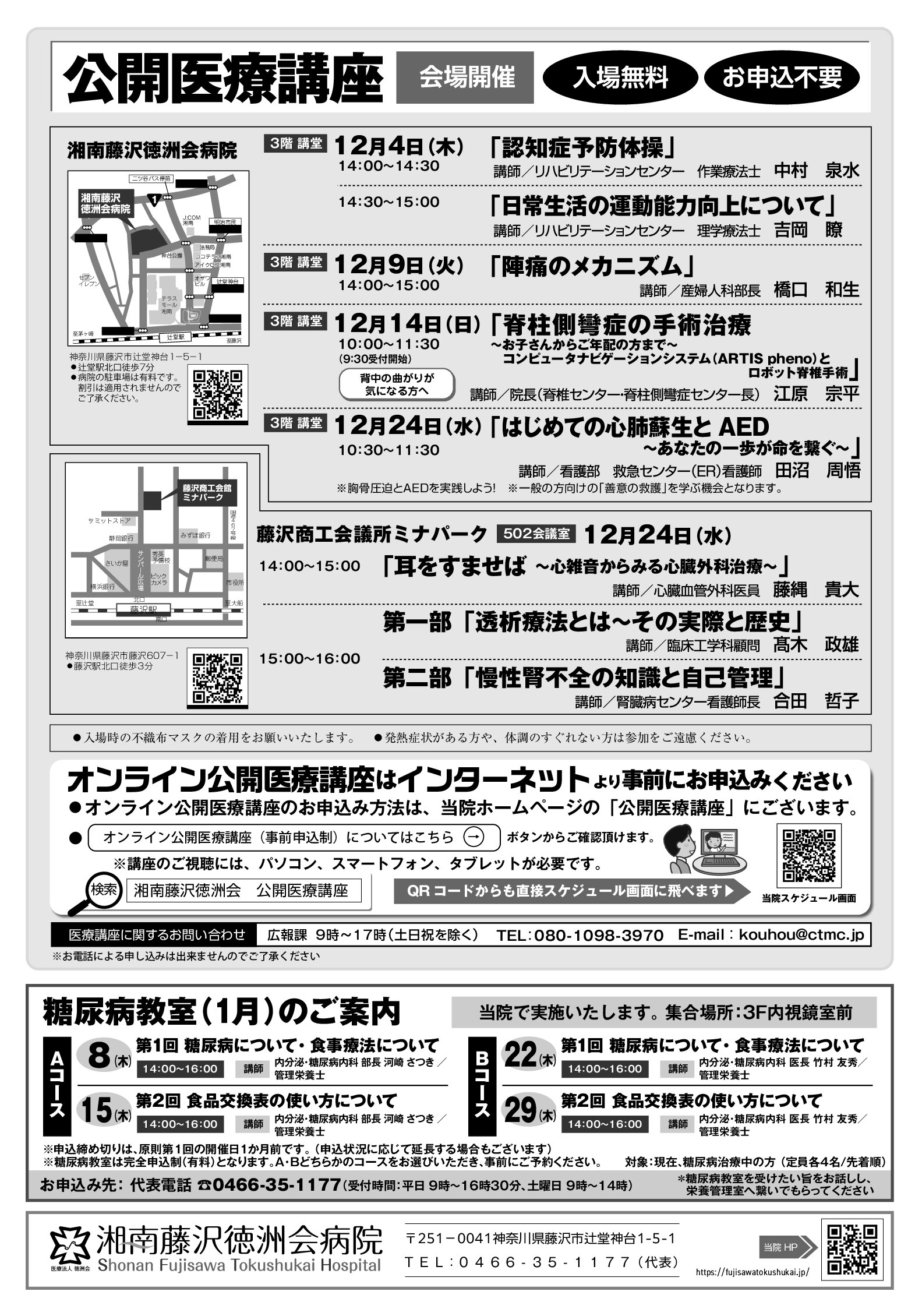 湘南藤沢徳洲会病院では、オンライン公開医療講座のスケジュールや、広報誌MARINEの発行のお知らせをメインに、当院からのお知らせなどを月に数回、メールでお届けしております。