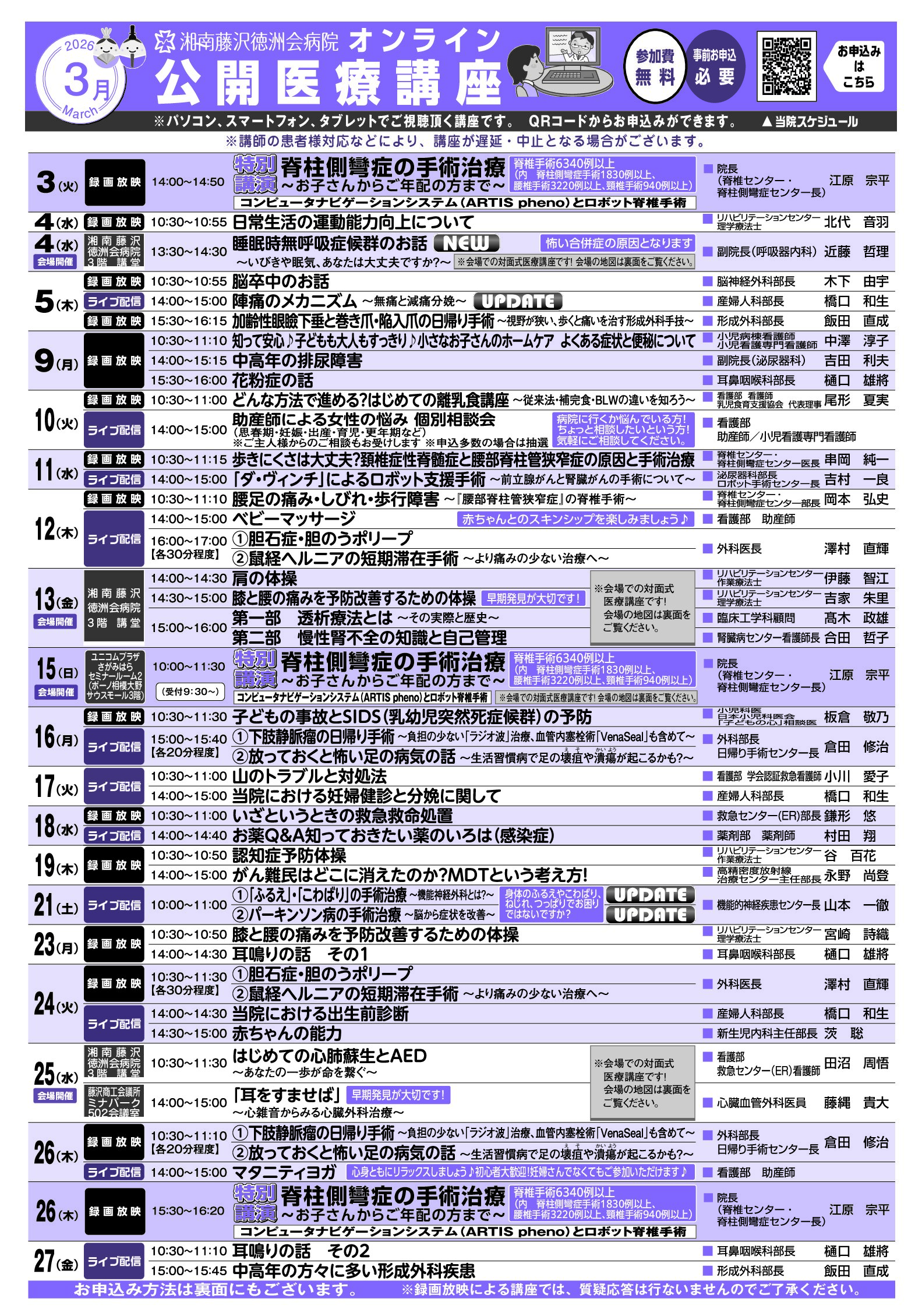 - 医師の患者対応により予告なく遅延、中止となる場合がございます。