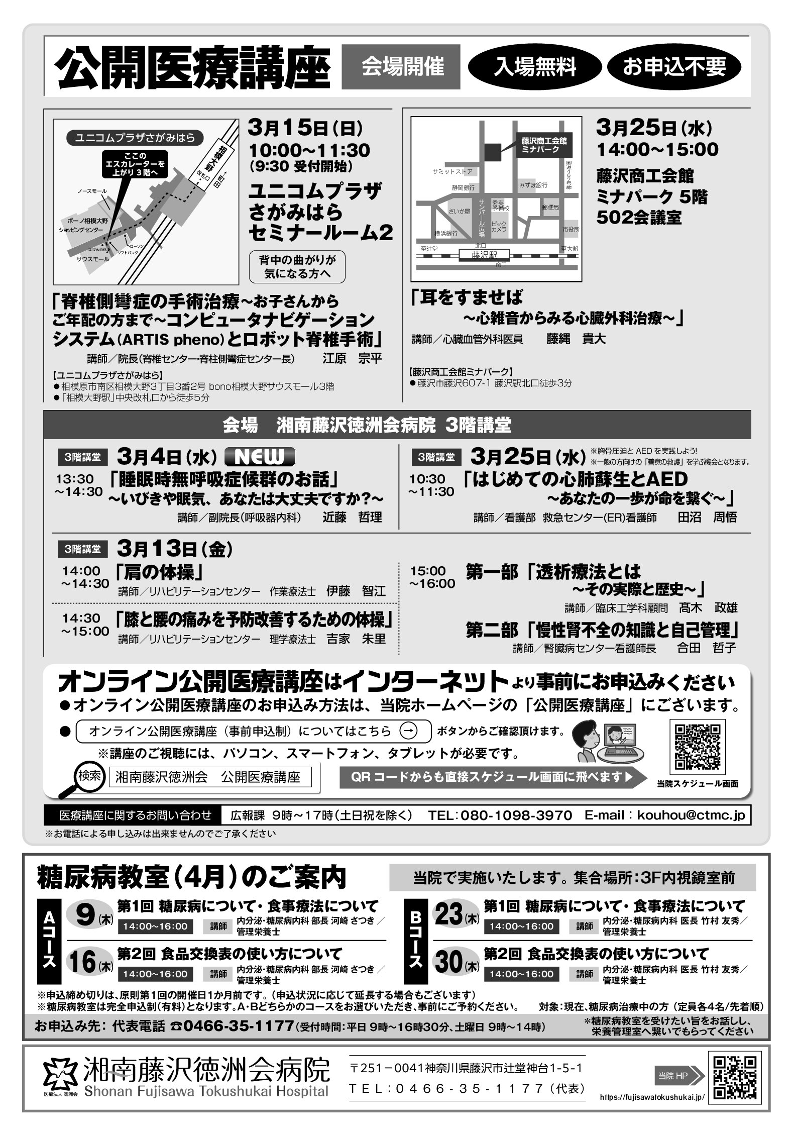 湘南藤沢徳洲会病院では、オンライン公開医療講座のスケジュールや、広報誌MARINEの発行のお知らせをメインに、当院からのお知らせなどを月に数回、メールでお届けしております。
