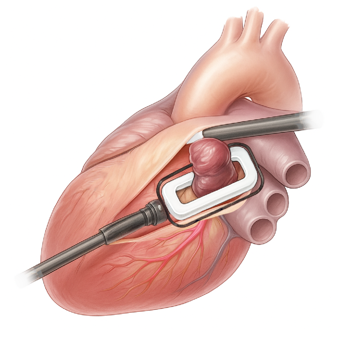 当院では、抗凝固療法が困難な心房細動患者さまに対し、脳梗塞予防の新たな選択肢を提供いたします。胸腔鏡下左心耳閉鎖術(TT-LAAC)は胸腔鏡を用い、左心耳をクリップで閉じる低侵襲手術です。開胸や人工心肺は不要で、短期入院で治療可能です。