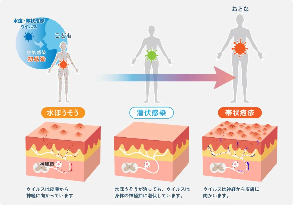また、それだけでなく、帯状疱疹は痛みの治療も重要です。できるだけ早く神経ブロック治療を開始することにより、帯状疱疹後神経痛への移行を減らすことができます。